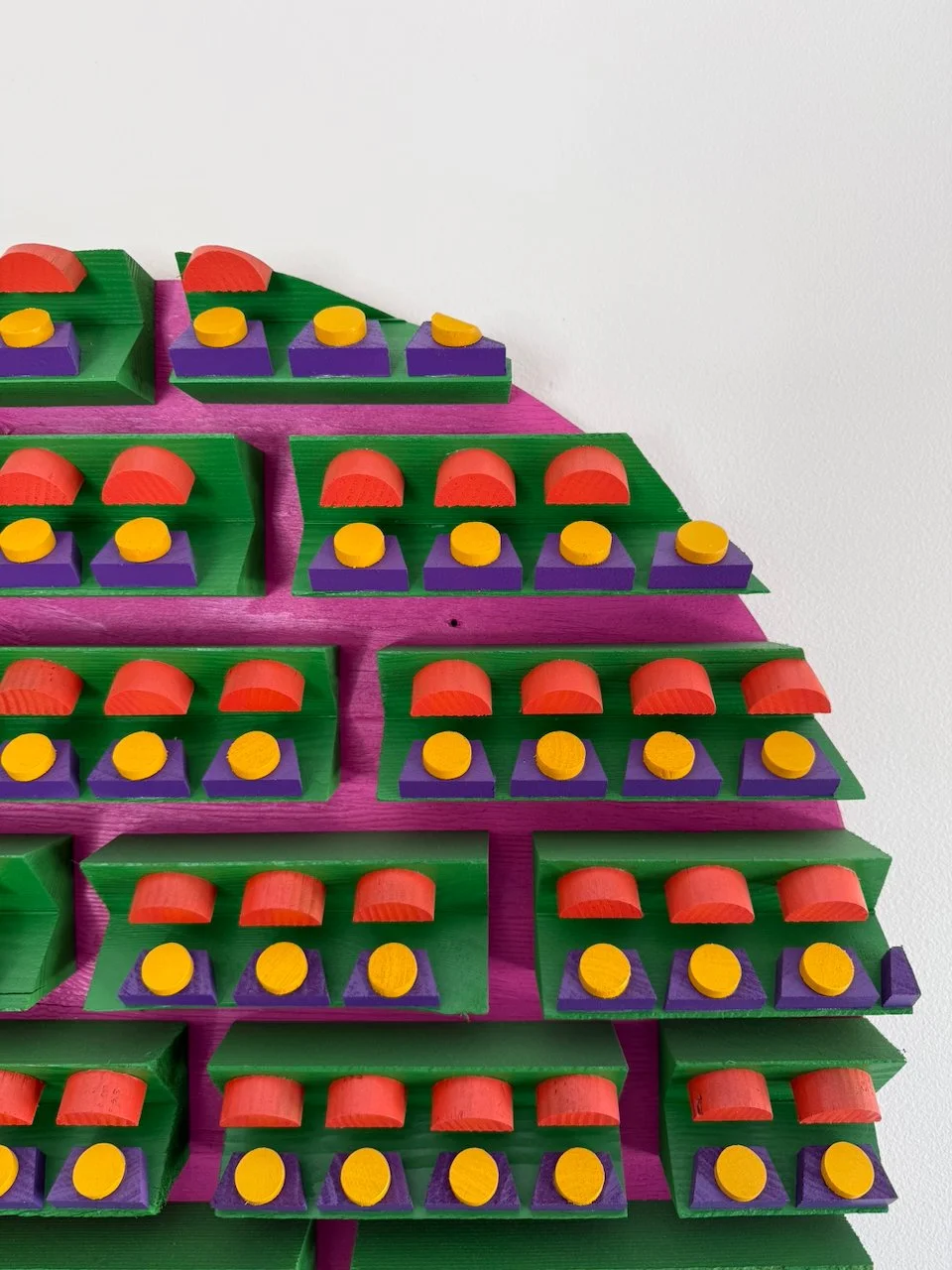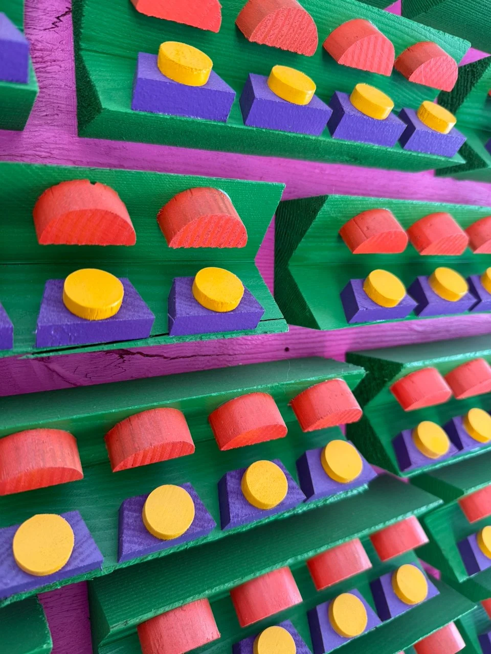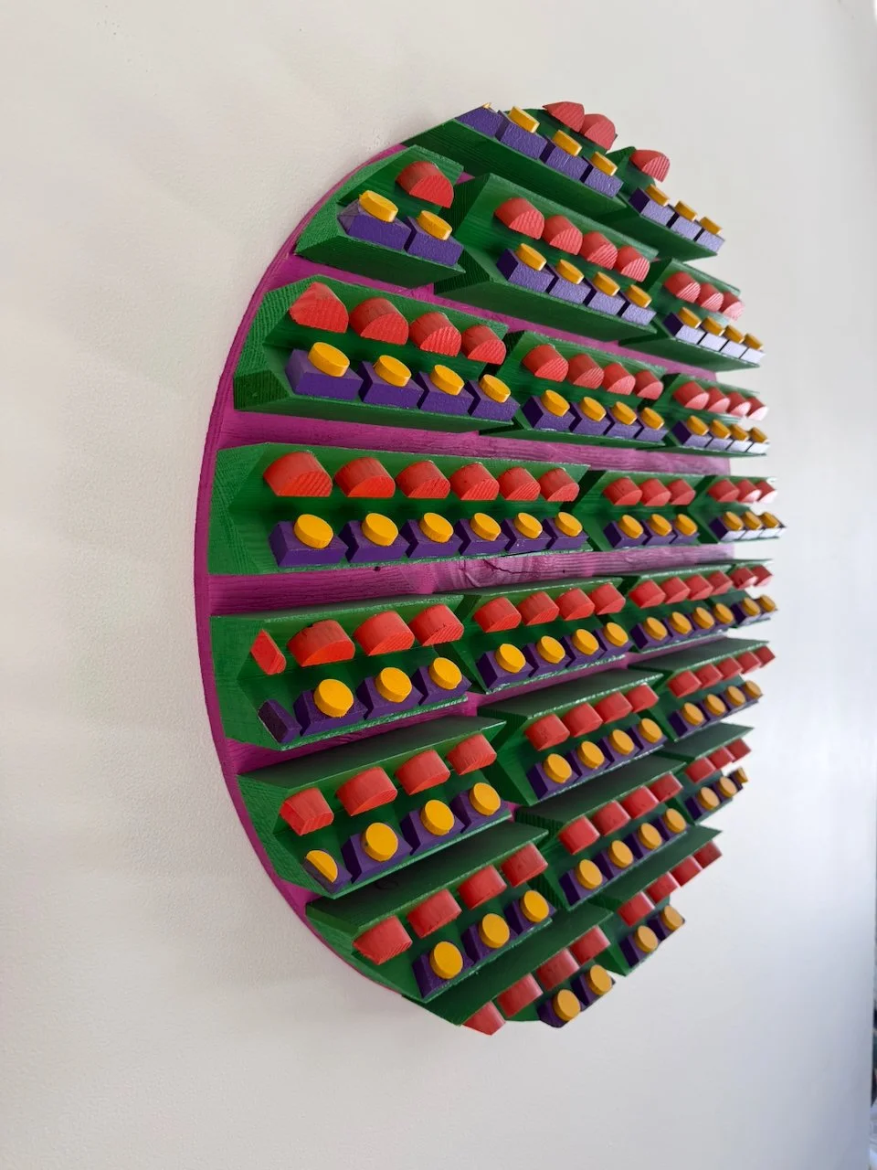 reminder 22.0 had been bouncing around in my head for a few years. one of the first scrap pieces i'd ever made had a small section that always stuck with me. instead of assembling a whole mess of different materials and types with a seemingly random smattering of color, i wanted to see what it would be like if i took a more structured/focused approach. so i did a little mock-up on the iPad and started cutting, painting and gluing. the materials are 1/2" plywood, hemlock, poplar, and some old maple from a chair i found on the curb.