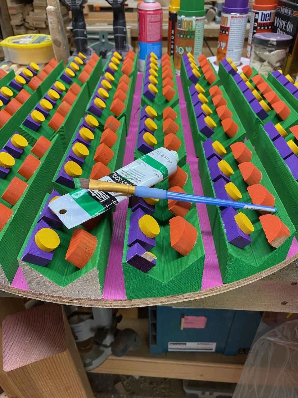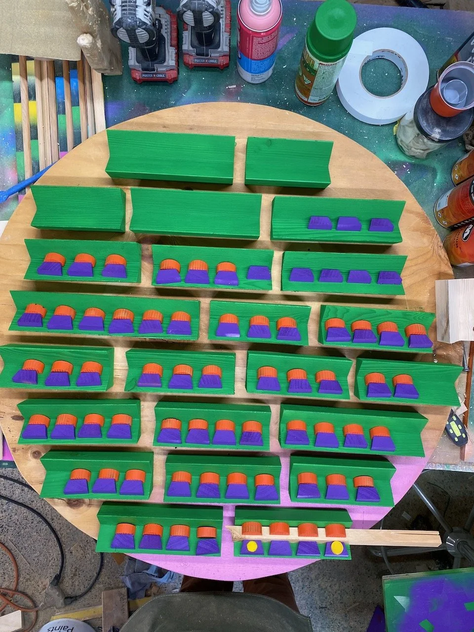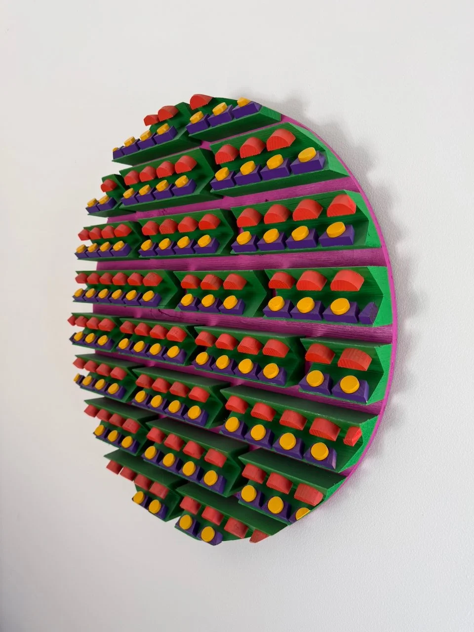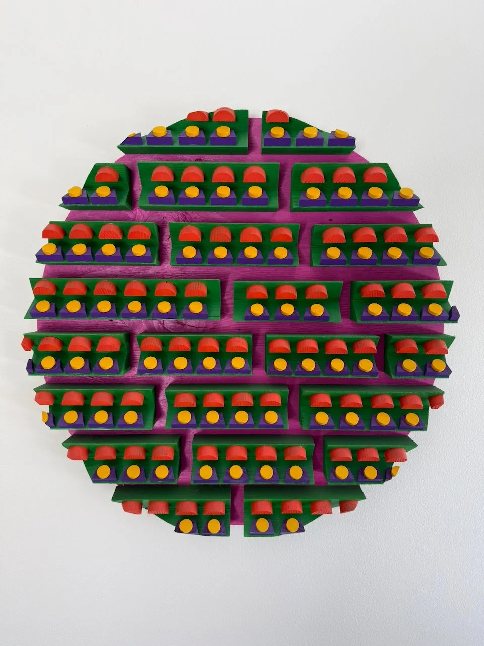 reminder 22.0 had been bouncing around in my head for a few years. one of the first scrap pieces i'd ever made had a small section that always stuck with me. instead of assembling a whole mess of different materials and types with a seemingly random smattering of color, i wanted to see what it would be like if i took a more structured/focused approach. so i did a little mock-up on the iPad and started cutting, painting and gluing. the materials are 1/2" plywood, hemlock, poplar, and some old maple from a chair i found on the curb.